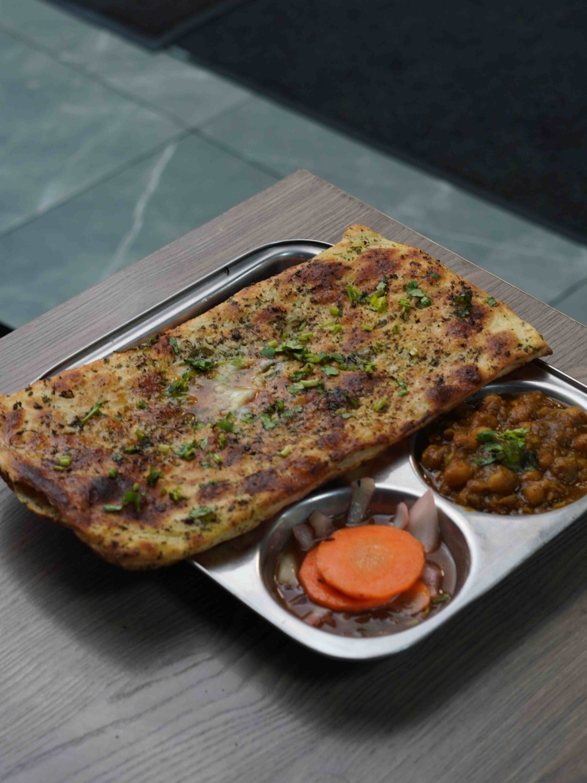 <p>Extra crispy oven kulcha served with chole, dahi, special imli chutney and pickles.</p>